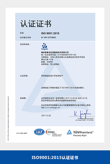公司通過ISO9001:2015質(zhì)量體系認(rèn)證。